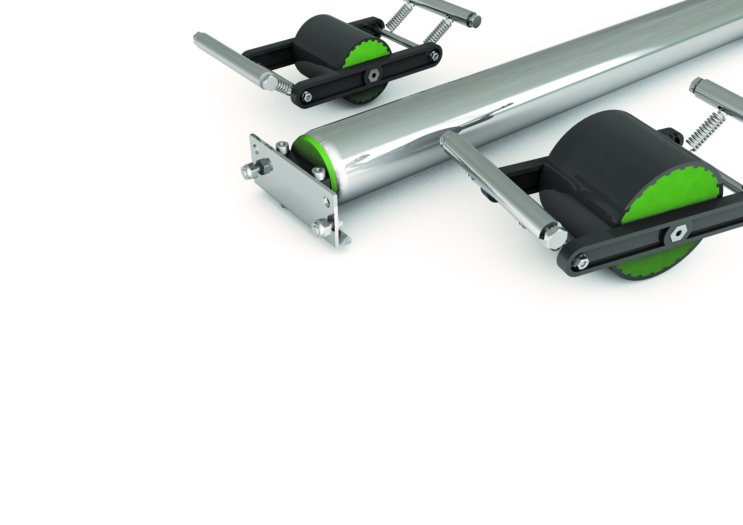 Even on unstable surfaces, the brake rollers stay on track. They feature a spring suspension system that consistently applies pressure to the conveyed goods. Factors such as roller model and inclination of environmental conditions make an impact on the selection of brake roller type and spacing. To maintain controlled speed, each pallet position requires at least one brake roller.